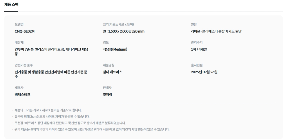 모디 매트리스 퀸사이즈 CMQ-SE02